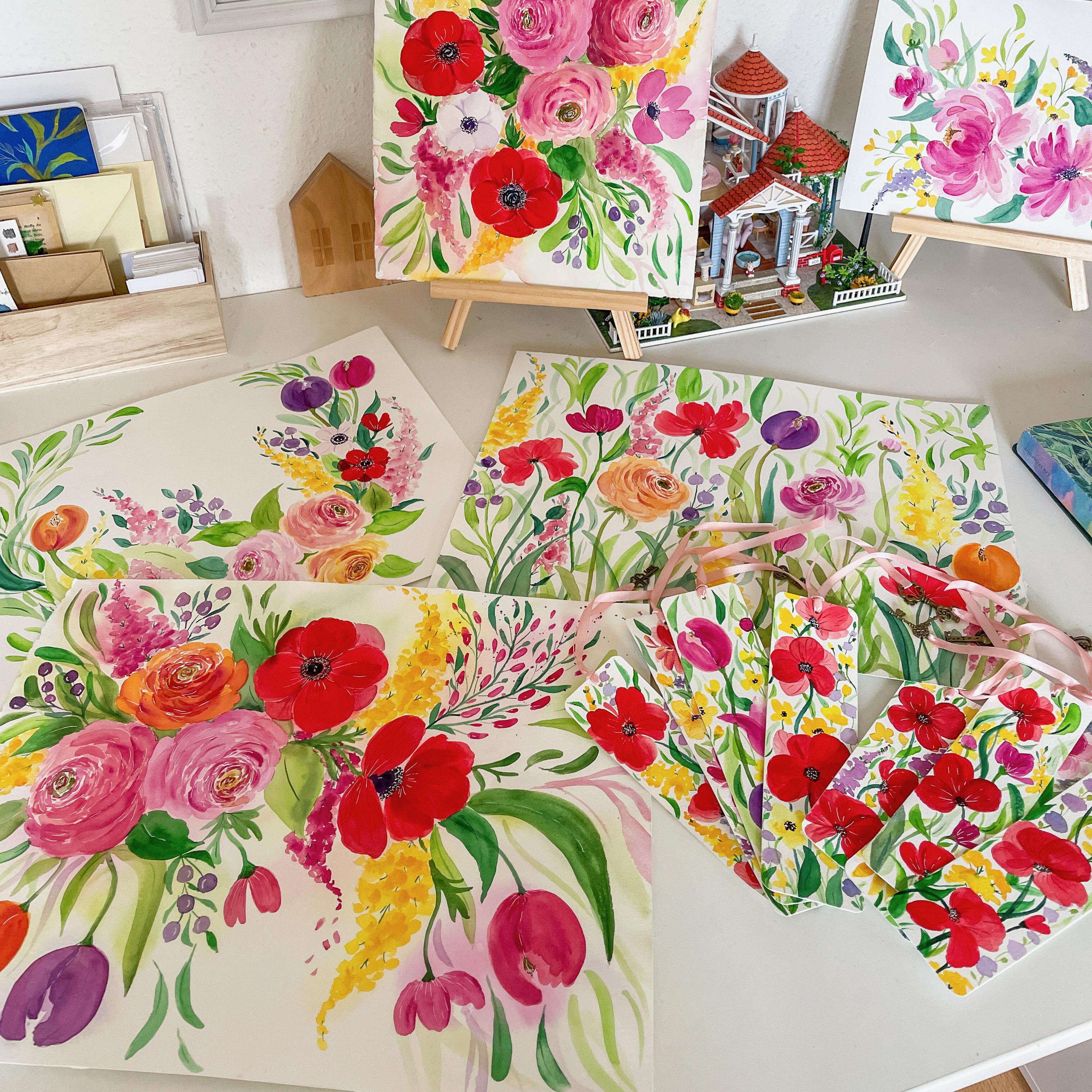 Vous pouvez vous rendre sur mon compte instagram (https://www.instagram.com/et.tagada/) pour prendre connaissance de mon style. Je peins surtout des paysages et des fleurs, mais je suis ouverte à toutes vos suggestions et envies.